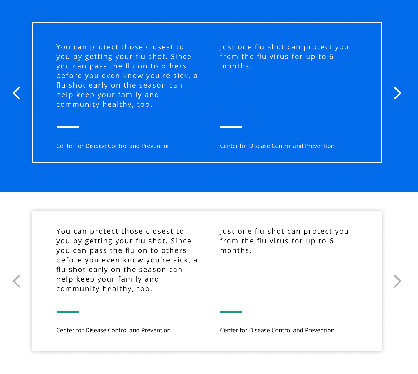 In the flu portal design hierarchy, I started with the simple assets first. Focusing on a straightforward, accessible approach to the assets. During the height of the pandemic, I wanted the ease and speed of providing the correct and helpful information to take priority.